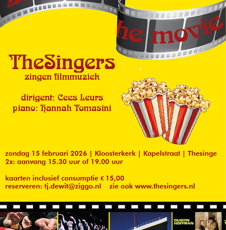 Op zondag 15 februari brengt het gemengd koor TheSingers in de Kloosterkerk van Thesinge een vierstemmige variatie aan filmklassiekers. O.l.v. hun dirigent Cees Leurs en met begeleiding op de piano door Hannah Tomasini.